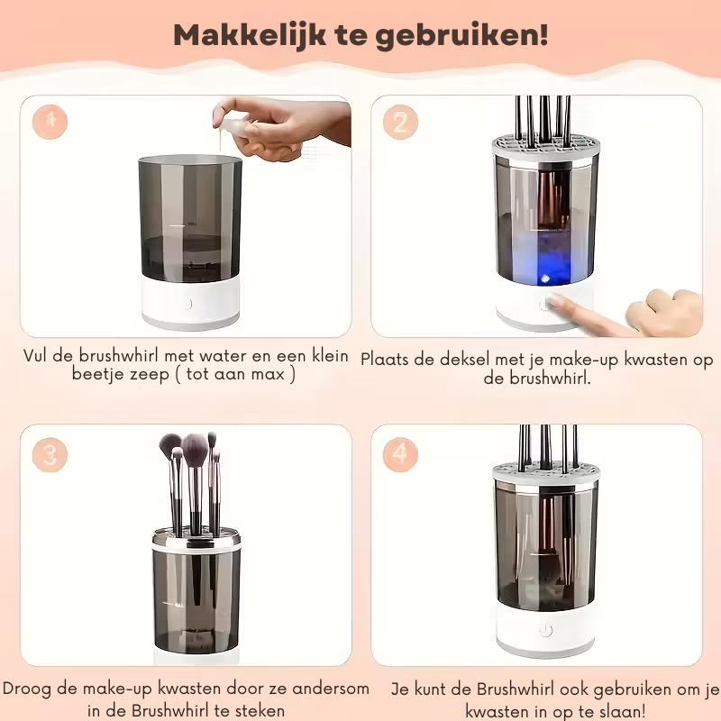 Altijd schone make-upkwasten zónder gedoe, in 30 seconden klaar met één druk op de knop!